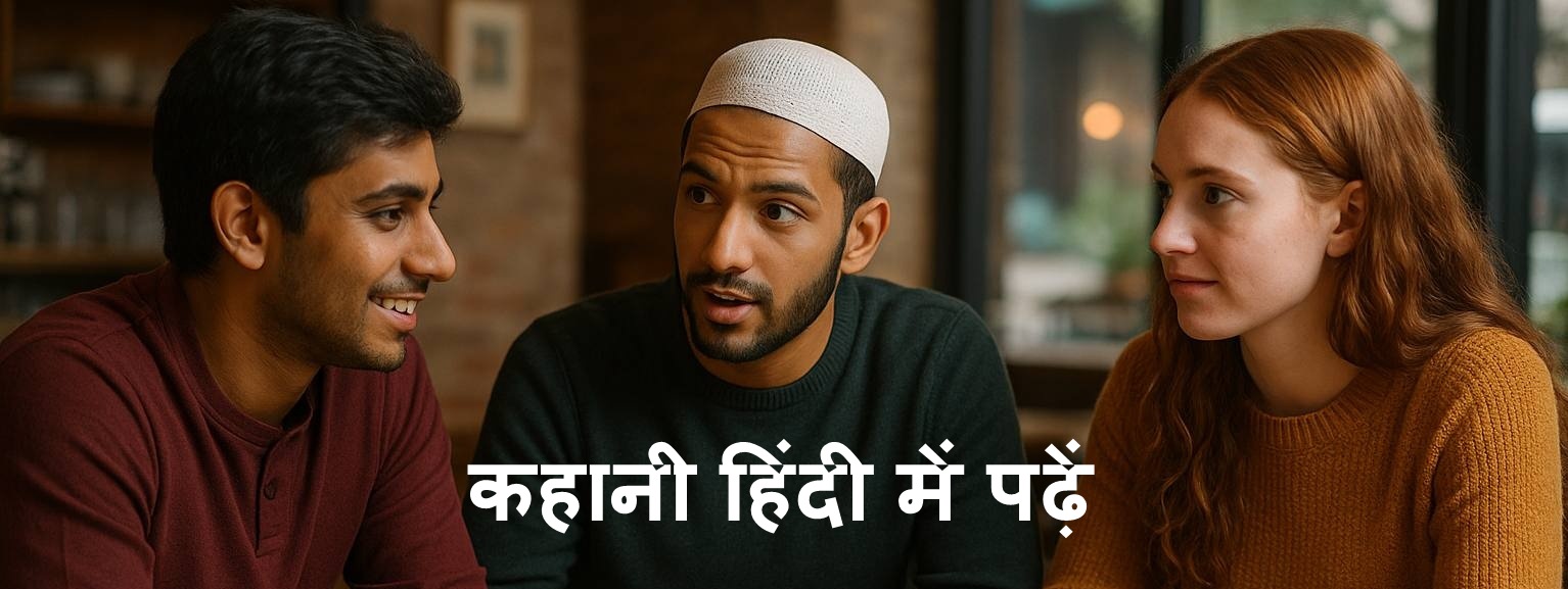 The story is told in English, Hindi, Arabic and Irish. The idea is to let everybody read it in their own language but without translations for dialogues in other languages, and afterwards with the translations to demonstrate how ignorance about other cultures shapes our perception of the world and how each culture considers itself superior, as I pointed out in my Deindividuation Resister Hypothesis.