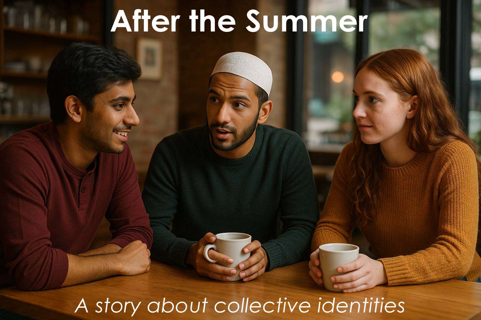 आफ्टर द समर, यूनिवर्सिटी कॉलेज डबलिन के तीन स्टूडेंट्स की AI-जनरेटेड कहानी है: भारत से आरव, सूडान से यासिर और टोरी आइलैंड से ब्रिड, जो एक-दूसरे के दोस्त बन जाते हैं। हालांकि, गर्मियों की छुट्टियों में अपने घरों में जाने पर, उनके परिवार उनकी सामूहिक पहचान (खासकर उनके धर्म) को मज़बूत करते हैं, जिससे डबलिन लौटने के बाद तनाव पैदा होता है। यह कहानी इंग्लिश, हिंदी, अरबी और आयरिश भाषाओं में बताई गई है। आइडिया यह है कि हर कोई इसे अपनी भाषा में पढ़े, लेकिन दूसरी भाषाओं के डायलॉग्स के ट्रांसलेशन के बिना, और बाद में ट्रांसलेशन के साथ यह दिखाने के लिए कि दूसरी संस्कृतियों के बारे में अज्ञानता दुनिया के बारे में हमारी सोच को कैसे आकार देती है और कैसे हर संस्कृति खुद को बेहतर मानती है, जैसा कि मैंने अपनी डीइंडिविजुएशन रेसिस्टर हाइपोथिसिस में बताया था। हालांकि, मेरी हिंदी, अरबी और आयरिश भाषा की स्किल्स बहुत सीमित हैं, इसलिए मैं इन वर्ज़न्स को प्रूफरीड नहीं कर पाया। (मेरे निर्देशों के बावजूद, वर्शन थोड़े अलग हैं।) मैं कहानी की आखिरी लाइन से सहमत नहीं हूँ कि इंग्लिश ही एकमात्र ऐसी भाषा है जो खुद को सेंटर में रखने पर ज़ोर नहीं देती (मुझे लगता है कि इसका उल्टा सच है), लेकिन इस कहानी के संदर्भ में यह सेक्युलर दुनिया की आज़ादी का प्रतीक है जो सबके लिए खुली है।